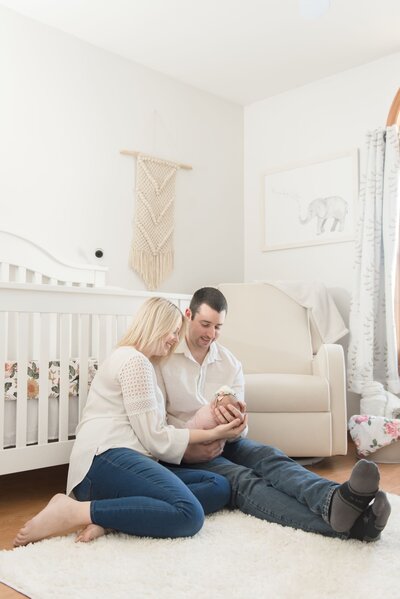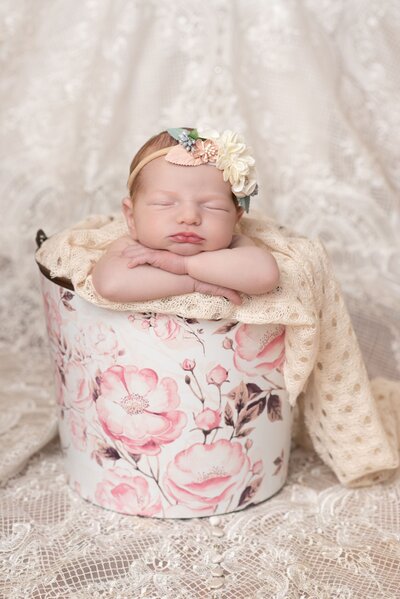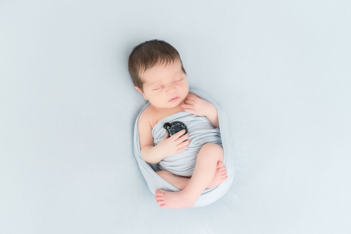 Since our sessions are completed in our studio, we don’t have to worry too much about timing as we’ll have appropriate lighting inside. The most important thing is timing your newborn session around your baby’s sleeping and feeding schedule.